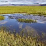 More than 70 species of vascular plants have been found in the Reserve. A wide variety of wetland plant species grow in the marshes. The flood meadows are covered in Lyngbye’s Sedge and on drier ground Woolly Willow, Tea-leaved Willow, Common Sedge and Common Cottongrass predominate as well as various species of grass. Sedge was harvested by the local farmers right up until 1970. Most of the ponds are fringed with Bottle Sedge, Pondweed, Bogbean, Water-milfoil and other pond plants. In the peat holes in the Flóagafl area you can find Northern Bur-reed, Thread-leaved Water-crowfoot and Vernal Water-starwort.
